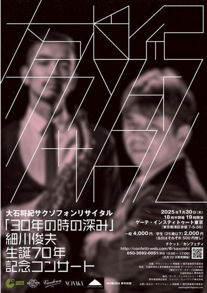 ♪大石将紀サクソフォンリサイタル「30年の時の深み」細川俊夫生誕70年記念コンサート