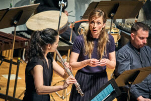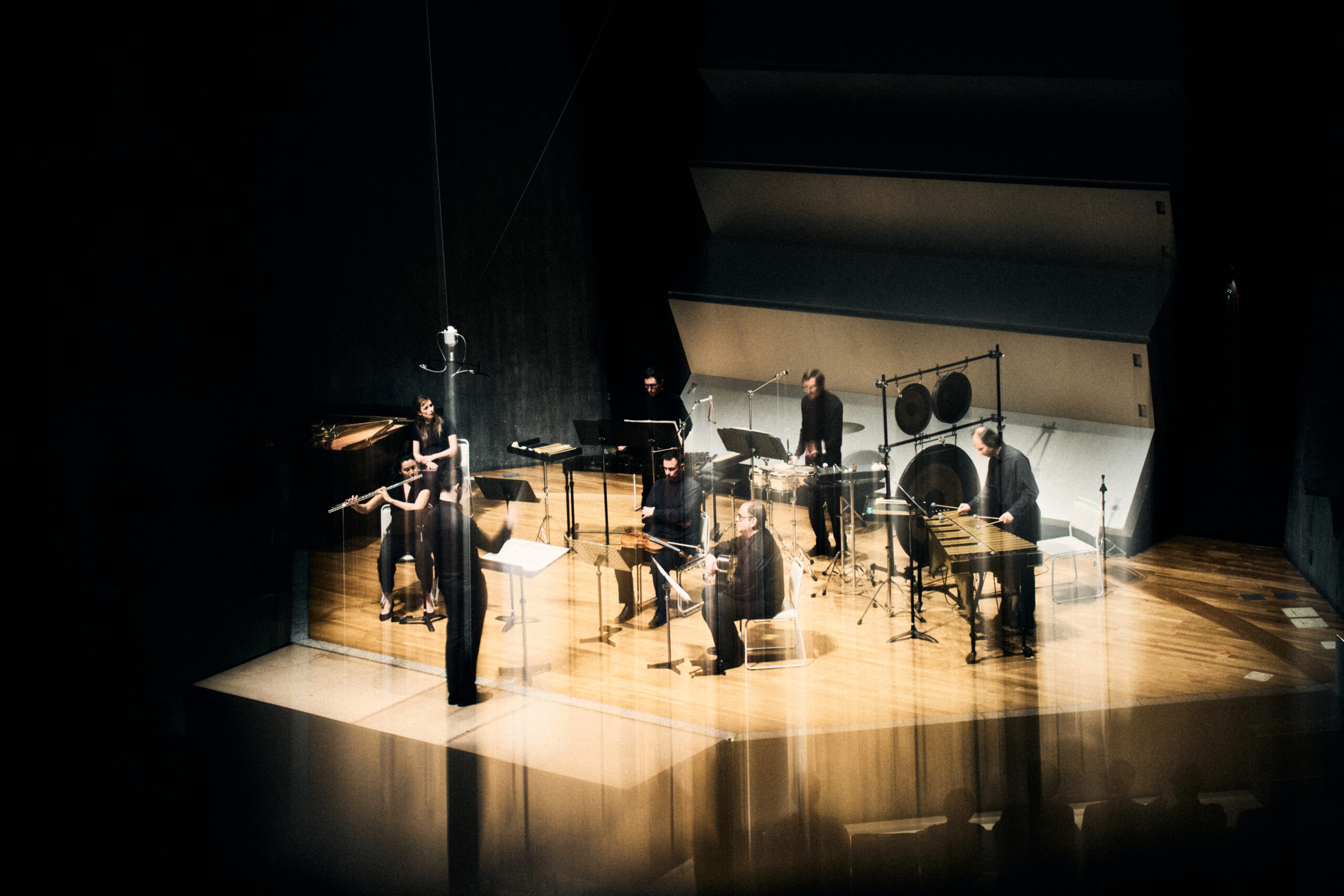 この点、劈頭を飾ったフィリップ・マヌリによる『東京のパッサカリア』はどうか。パッサカリアといっても、聴取可能な特定の低音主題の反復というよりは、単音のオスティナートを基軸として音楽が展開されているように聞こえた。マヌリは各楽器にかなりの程度個別的で放埒なプレイを許容しつつ、それらを流れ、いわば都市のすばやい交通のようなストリームのような群としての運動として扱う。東京という都市からインスピレーションを受けたかどうかは知らないが、雑多に見えてきわめて整然としたスピード感がそこにある。これらを統括する役割を果たすのが、オスティナートの核になる単音を和音から見え隠れさせたり、素早いアルペッジョで音を繋いだりと八面六臂の活躍をするピアノであり、その意味でピアニストが今回のキープレイヤーであろう。個別性の高い楽器群を複数の流れとして操作する手腕は見事であり多少耳新しいが、例えば金管楽器の扱いを始め、楽器法に由来するサウンドはきわめてオーソドックスな現代音楽のそれといった感があり、果たしてフォーク・ソングスの後になると印象がやや薄れてしまう。