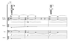 上に引用した木下正道さんの文章のきっかけとなった作品です。2021年のSPAC-Eの演奏会での初演(Br.Sax, Db, Elec)の際には本堂誠君と篠崎和紀君にリハーサルのたびに楽器研究と修正作業に付き合っていただきました。この演奏会ではサクソフォンとコントラバスに緻密なアンサンブルが要求されるダニエル・ダダモの《天と地》を演奏したため、リハーサル回数が多めに設定してあったのもこの創作にとっては前向きに働きました。2024年に編成を変え改訂初演(Br.Sax, Tub, Elec)される際には橋本晋哉さんにご助力いただき、原曲のコンセプトに忠実に、しかしチューバでこそ実現し得る音響を得ることができました。この改訂初演の際にエレクトロニクスのパートを作り込んだため、今後は元の編成でも改めて演奏したいと考えていますし、さらなる魅力的な編成が見つかれば、それにも挑戦してみたいと願っています。