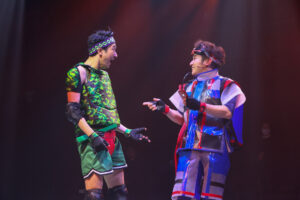 益山の空間内の高低をダイナミックに使った演出に、黒田による高度な身体性を俳優に求める振付けが、山本の世界観を着々と具体化していく。さらに、卓越した歌唱技術と情感を必須とする、エモいバラード調から攻撃的なアップテンポで複雑なリズムを刻むイガキの12のナンバーを、俳優たちはしっかりと歌いきる。