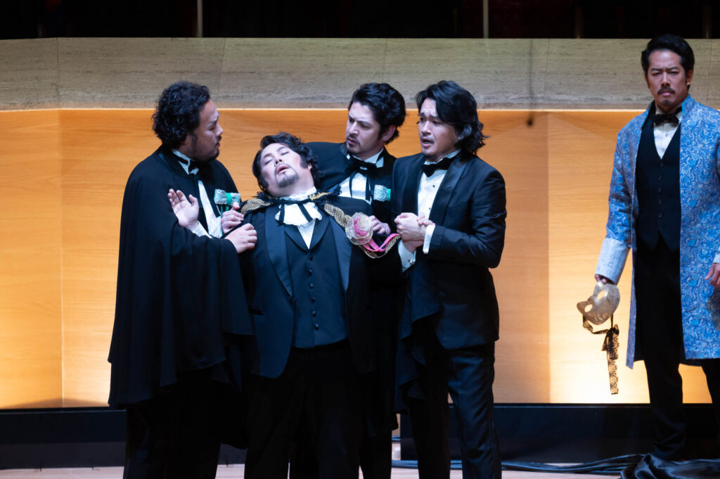 キャスト陣の充実ぶりも特筆に値する。リッカルド役の宮里直樹は、気品と人間味を感じさせる正統派の歌唱を聞かせた。アメーリア役の中村恵理は、リリカルな響きの中に感情の濃度をにじませる。レナート役の池内響は柔らかなバリトンで、内面の複雑さを丁寧に描いていた。