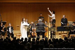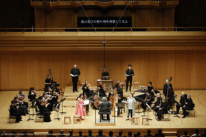 この時代のオペラやオラトリオであれば登場人物全員の合唱で終わるものを、この曲では「美」のアリアでしっとりと締めくくる。このエンディングは実に効果的。これでスンヘ・イムが最後に持っていった感がある。とはいうものの、全体として各歌手が聴かせどころでしっかりと歌い、オーケストラもそれを支えていた。鏡などの小道具を使ったり、客席に降りて歌うなどの演技を加えたセミステージの演奏も効果的であった。