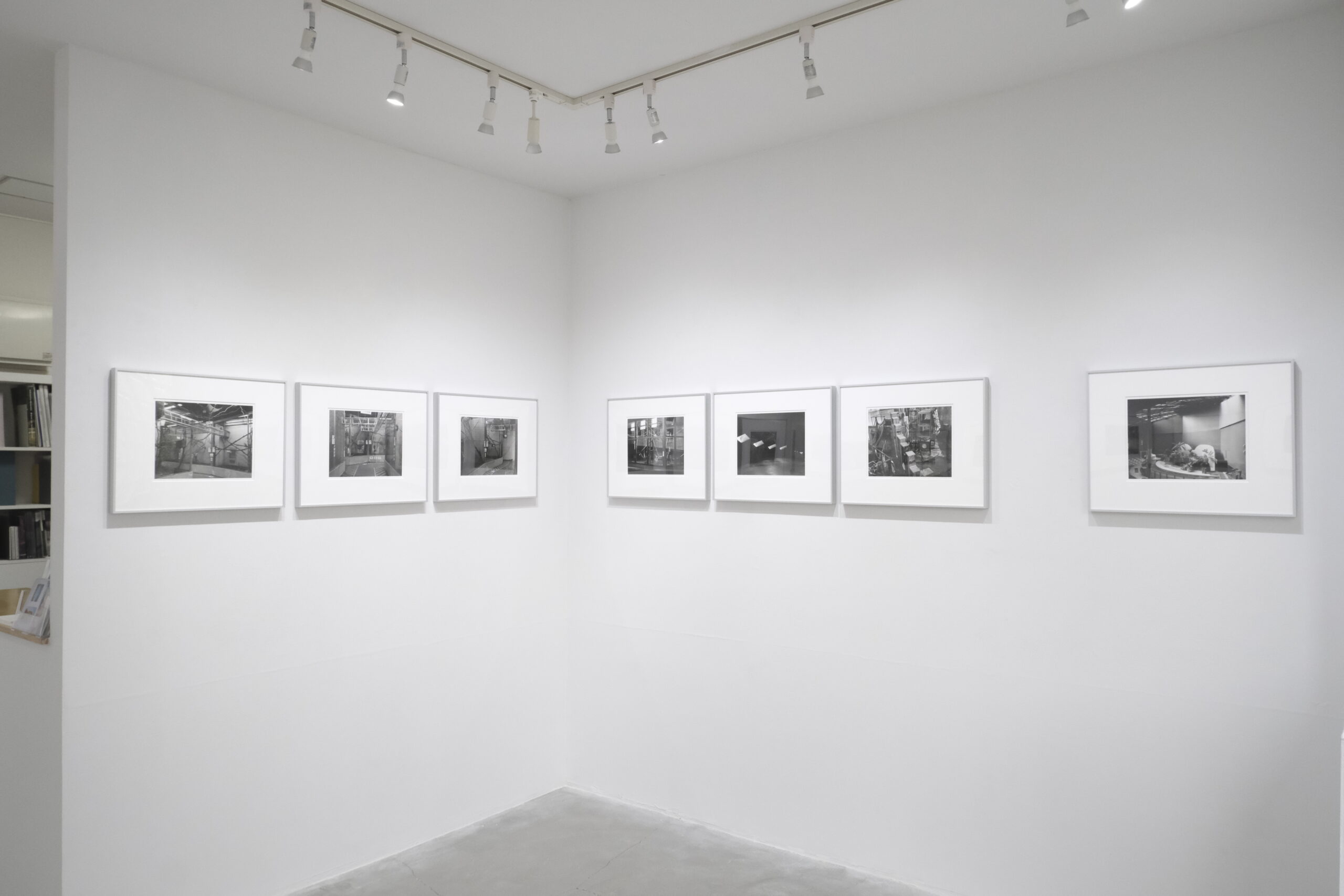 ここは道路に面する壁がガラス張りになっていて、外にも見えるような展示がなされている。なかに入る前にその様子を写真に撮る。車の通行量がけっこうあり、通り過ぎるのを待っていたら10分くらい経っていた。川口祐の展示を見る。