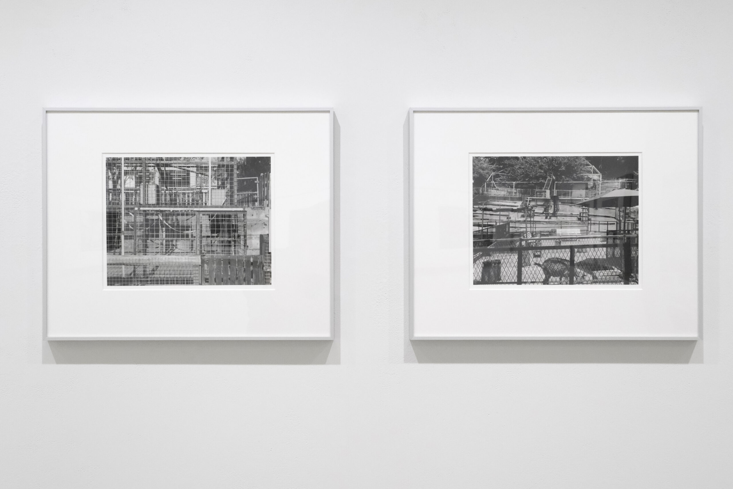 上部に掛かる橋の影が黒々と地面に落ちている写真があった。そういう写真だと思ってしばらく見ていると、橋の影のなかには動物が写っている。尻尾がしましまの、アライグマやレッサーパンダのような動物が何匹か、おそらくは直射日光を避けて集まっているようであった。この写真では、動物にも関心が向いていると考えられるだろうか。そうも思えるし、そうではないかもしれない。「3年の間、動物園を回り撮影し展示して来た行為も、今回でひと区切りになるかも知れません」(戸室健介のことばより抜粋)と本人が述べていることも踏まえ、写真と写真を何回も行ったり来たりして、見る行為に没頭する。