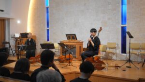 イル・マドリガローネは2023年に立ち上げられた若い団体である。2024年1月に小野・大野・上羽の三人で「ディミニューションの祭典」というコンサートを東京・宮城でおこなった。今回は演奏者の人数が4倍となり、事前にはワークショップをおこない、コンサートの前にその成果発表がおこなわれた。