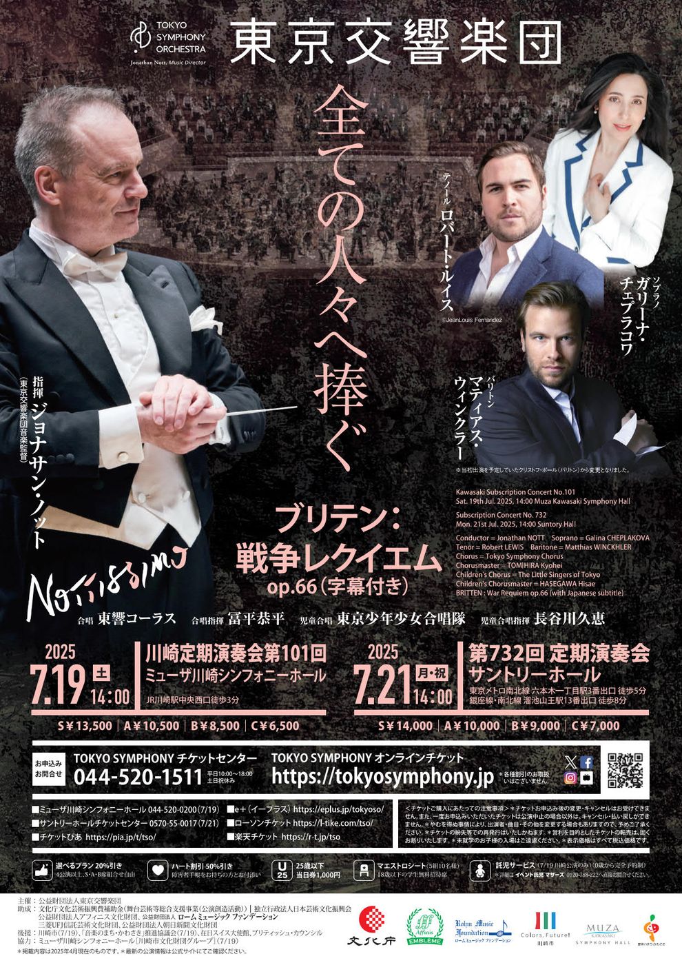 1989年から1991年にかけての冷戦の終わりを体験した我らが人類が、その30年後に新たなる「熱戦」を開始するとは誰が想像したであろうか。演奏会の標題「全ての人々に捧ぐ」の通り、全人類が直面している戦争への鎮魂でありプロテストであるブリテン「戦争レクイエム」を通してノット・東響が突き付けるものは何か、謹聴せねばなるまい。 ソプラノにガリーナ・チェプラコワ、テノールにロバート・ルイス、バリトンにマティアス・ウィンクラー。
