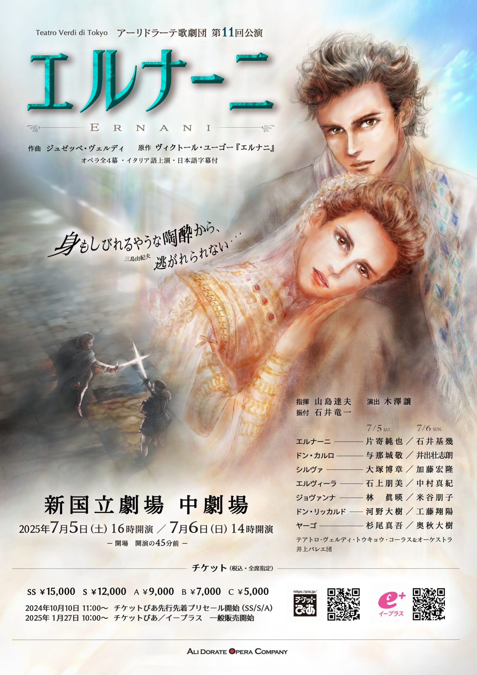 ヴェルディ作品に特化したオペラ団体「アーリドラーテ歌劇団」による公演。同団は、毎年1回の全幕上演を行っており、過去には《オテロ》《ルイザ・ミラー》など、いずれも高い評価を受けている。指揮は山島達夫、演出は木澤譲。出演者には片寄純也、与那城敬、大塚博章、石上朋美など実力派が揃う。