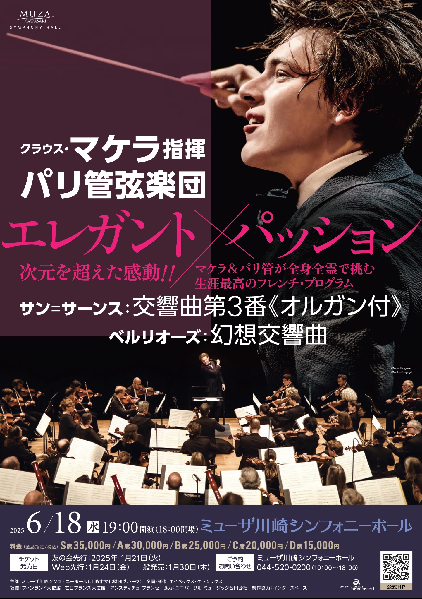 2022年の10月以来、2年8ヶ月ぶりのマケラ&パリ管弦楽団の来日公演。その際はストラヴィンスキーの『春の祭典』『火の鳥』(全曲版)をメインに据え、それぞれの前半にドビュッシーとラヴェルを並べるというまさにパリ管の得意とする直球名曲プログラムが用意されていたが、今回はサン=サーンスの『オルガン付』とベルリオーズの幻想交響曲を一晩で披露するというハンバーグ定食のあとにカツ重かという重量級のプログラムが1つ、さらにムソルグスキー=ラヴェルの『展覧会の絵』とラヴェルの『マ・メール・ロワ』『クープランの墓』が1つ、つまりは今回も変化球なし。皆がこのコンビで聴きたいのはチャレンジングなプログラムではないだろうし、誰もが知る名曲だからこそその差異に注目することができる。とはいえ個人的には少し捻ったプログラミングが好ましいけれど。筆者が聴いたミューザ川崎公演、チケットは完売。