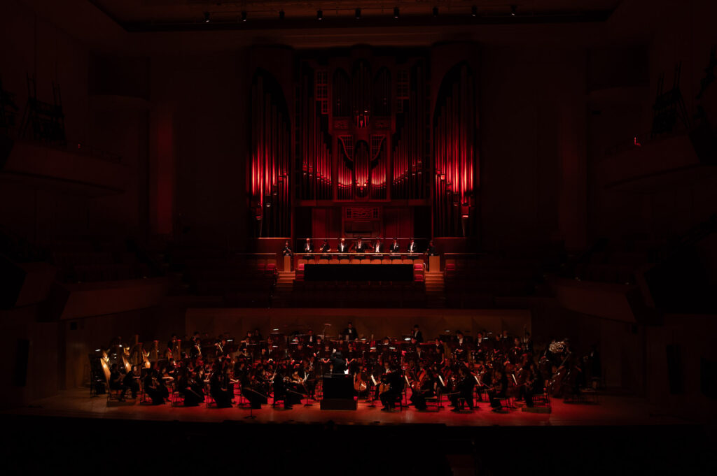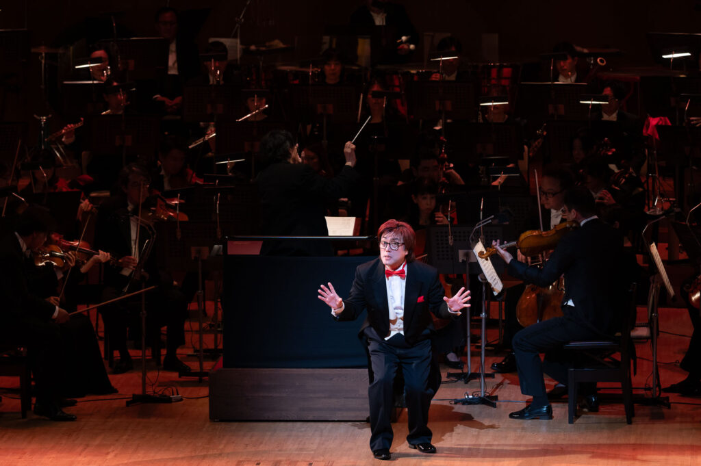 光の演出も印象的で、パイプオルガンを背景に全体を赤く染めるなど、音と視覚の緊張感が観客の想像力を揺さぶるような構成であった。
