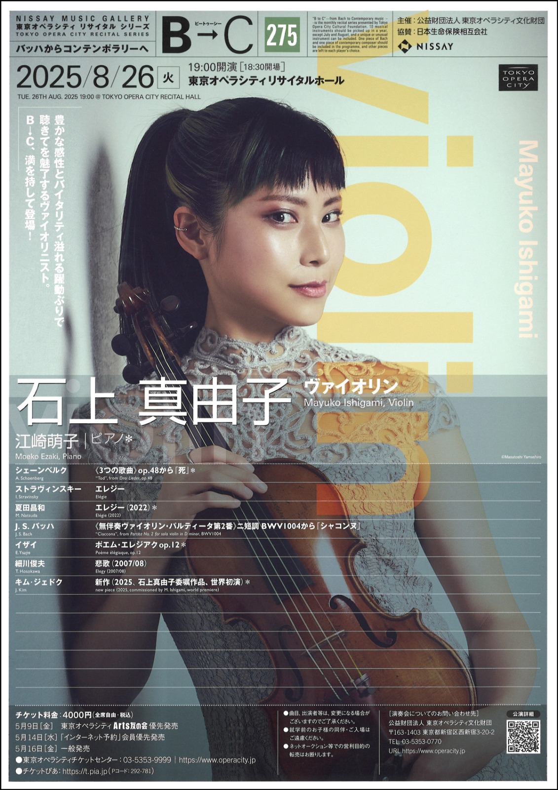 🎵 8/26 B→C バッハからコンテンポラリーへ 275 石上真由子(ヴァイオリン)