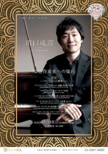 川口成彦による新シリーズ「女性作曲家への憧れ」全3回公演の第1回。そのココロは「男性演奏家である自分が女性作曲家の感性に憧れを感じる」という純粋な自分の心情にある、とか。