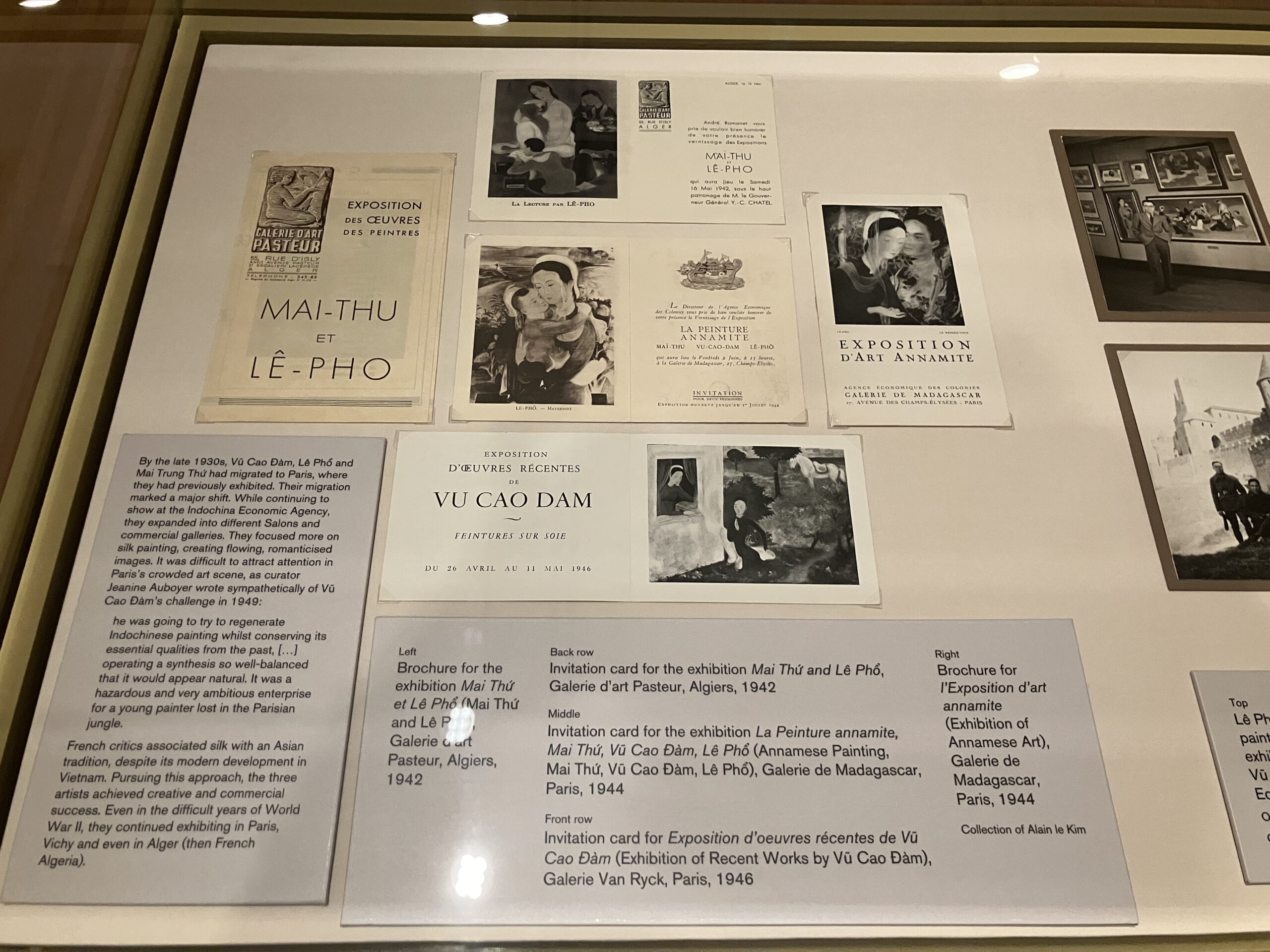 彼らの作品について多数紹介されていたのが、絹画である。二村の研究によれば、レ・フォー、ヴー・カオ・ダン、そしてマイ・チュン・トゥはいずれも、ハノイ時代から絹画を描いていたわけではなく、フランスに渡ったことで「国画のメディア」として絹画を選択したのだという(二村 2021: 321)。