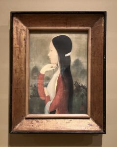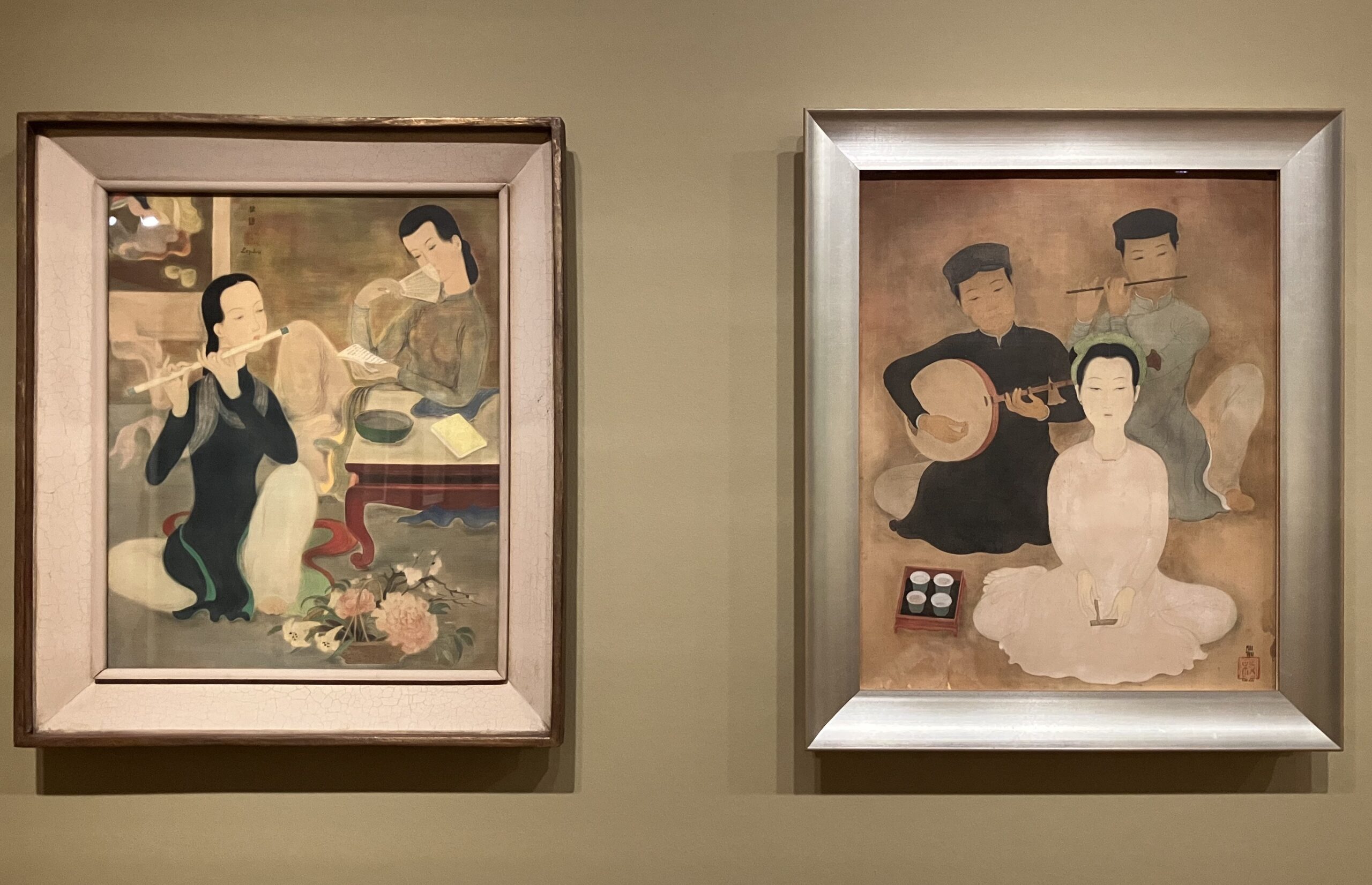 続いて、パリに移住して活動したベトナム人画家たちの作品を取り上げたい。先に触れたように、ベトナムでは1925年にインドシナ美術学校が設立されており、上述の画家たちは皆、ここの卒業生であった。中には、「絵画のためのマーケットがなく、画廊も存在せず、それ以前に『美術(mỹ thuật)』の概念が広く一般に定着していなかった」当時のベトナムを離れ、フランスに移住した画家たちがいた(二村 2021: 224)。彼らは「パリ仏越派」と呼ばれていて、今回の展覧会で数多く取りあげられているレ・フォー、ヴー・カオ・ダン、そしてマイ・チュン・トゥ(Mai Trung Thư: 1906-1980)は、このグループのメンバーである。