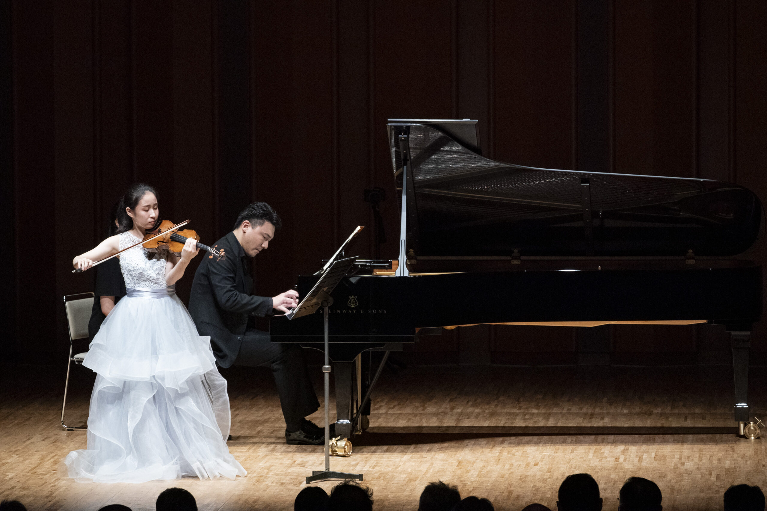 佐々木のこの「歌」への、それも、楽器の響きを発するすべての音で損なうことがない歌の美しさへのこだわりは、冒頭のモーツァルトからシューベルト、アンコールのフォーレと、歌い回しを直球で問う選曲の隅々にまで現れているように思うのだが、すでに闊達にモーツァルトと戯れるピアニストに比しておとなしい所作にとどまったモーツァルトよりも、彼女の歌心はシューベルトの陶酔的な語りにおいて大きく羽ばたいたように見える。天国と深淵を行き来する深々たるシューベルトではないが、はつらつとして情熱的な魅力があり、それもまたシューベルトの音楽の一側面だ。二人はフィギュアスケートのデュオのように、節回しを共有し、駆け引きを伴う動的な対話をつくりだす。なんといってもそこにはピアニストの存在が大きい。とにかく秋元孝介という音楽家の懐の深さには感銘を受けた。佐々木の歌への専心を理解した上で、半歩先で雰囲気を醸成し、必要なところではトーンダウンし、ニュアンスを掘り下げ、静的な美にとどまらないように、よりじっくり、かつダイナミックに歌いあげるように、とヴァイオリニストを誘ってさえいたように聞こえた。最弱音もこよなく美しい。