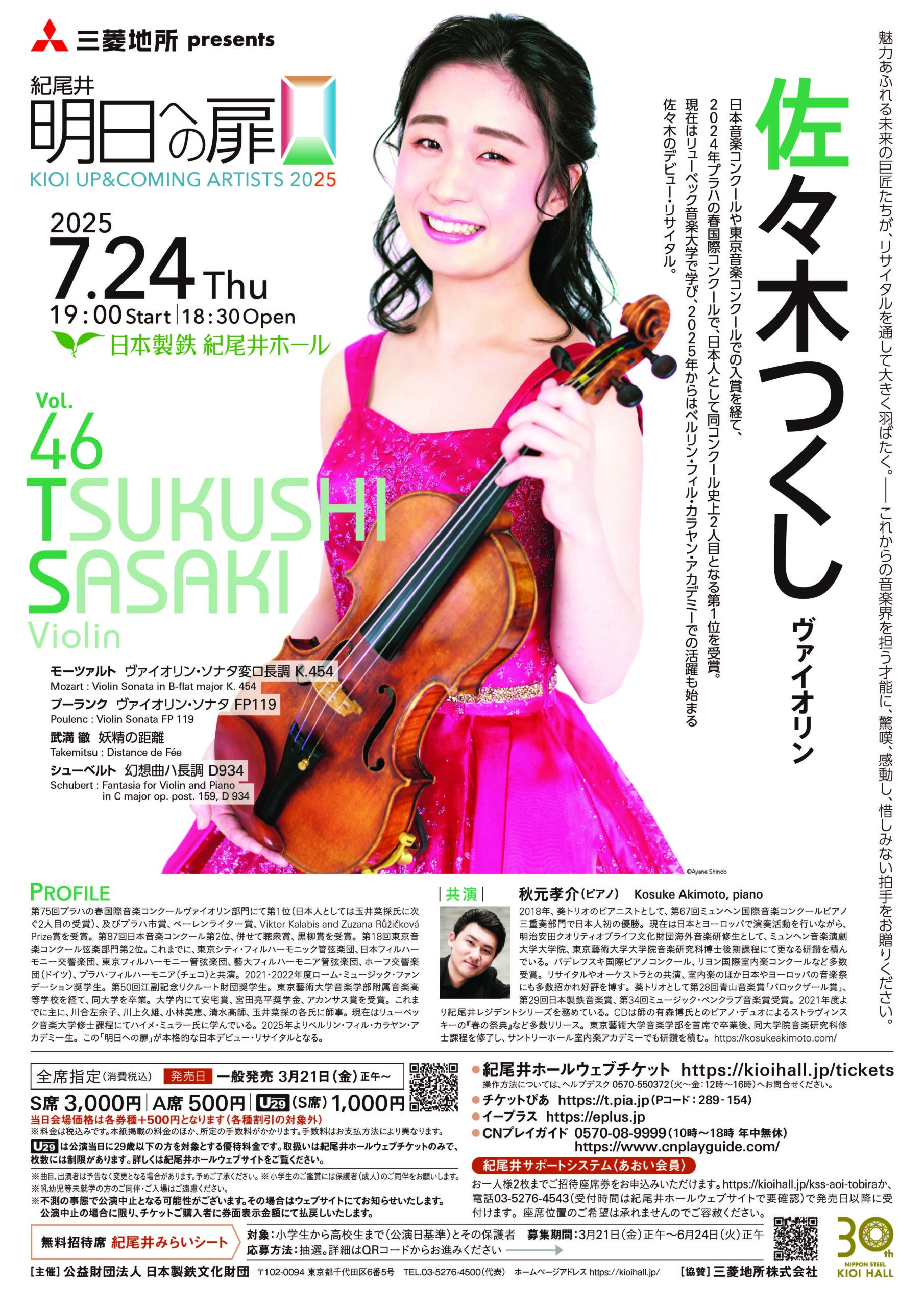 紀尾井 明日への扉 第46回 佐々木つくし(ヴァイオリン)|秋元陽平