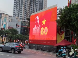 2025年9月2日にベトナムは建国80周年を迎え、8月から9月頭にかけて、ハノイの街は祝福ムードで満たされた。目に見える動き、多数派の動きだけを捉えて一言で「ベトナムの姿」と断じてしまうことにはためらいがあるのだが、そうは思いながらも、これぞ歴史的瞬間だ、と思わずにはいられない盛り上がりであった。私はこの雰囲気に、時に溶け込んで高揚し、時に嫌気がさしながら、すっかり圧倒されてしまった。