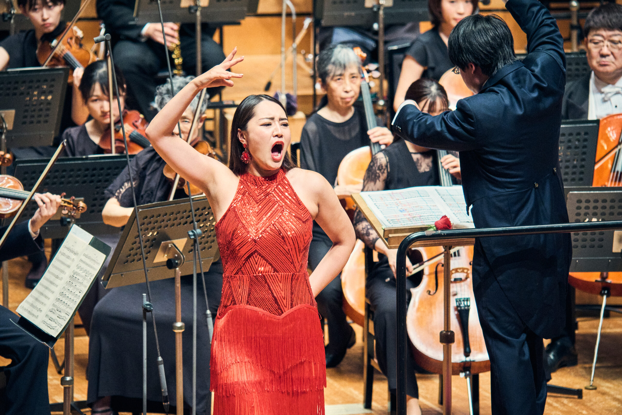 次は『カルメン』からの抜粋。まず太田弦について述べれば、第1幕への前奏曲や第2幕への間奏曲でのオケのドライヴ、響きの細やかな練り上げは巧みなものだったが、歌の入るハバネラやセギディーリャでは少し単調で抑制気味、歌唱とオケが互いに相乗効果を発揮して全体としてエモーショナルに盛り上がるには至らない。しかし高野百合絵―真っ赤なドレスに花を持って登場―に限って言えばソプラノとの表記があるがメゾ寄りのふくよかな声質、適度なケレン味も交えてなかなか素晴らしい歌唱を聴かせる。声楽的な意味での完璧さよりは演技も含めトータルとして存在そのものがステージ映えする。コンサート形式ではないオペラハウスでの高野の『カルメン』にぜひ接してみたいと思わせるに十分。