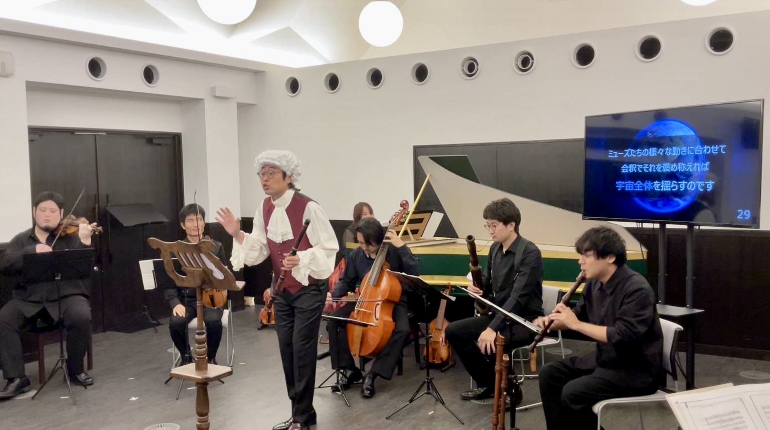 ータ。これが楽器奏者も巻き込んだ抱腹絶倒の喜劇で、くすっとかうふふとかを通り越して、ぎゃはは!と大笑いしてしまうほど。ストーリーはソナタの話をしているはずが、嵐が始まり、いつのまにか宇宙の話になっていて、ばかばかしさと壮大さのギャップがまた可笑しい。また、字幕が歌詞対訳のみならず、それに関連する図像なども併せて表示しており、雰囲気を盛り上げるのに一役買っていた。フレンチ・カンタータってこんなに面白かったのかと目から鱗がぼろぼろとこぼれ落ちた。