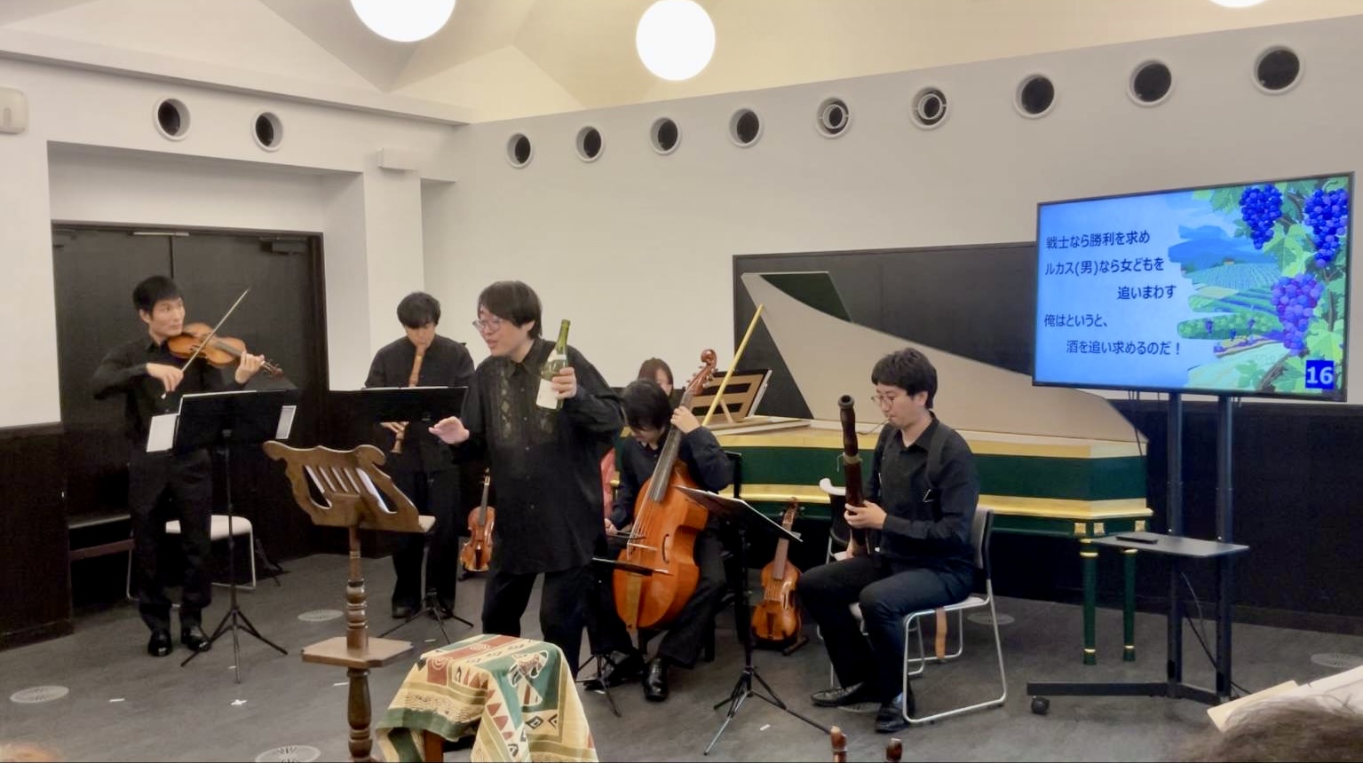 つづくルフェーブルのカンタータはヴァイオリン(佐藤)、リコーダー、ファゴット、ヴィオラ・ダ・ガンバ、クラヴサンによる小編成の伴奏だが、それを感じさせない。幸せな酔っ払いに扮する春日がいい味を出しているものの、この時点ではまだジャブ程度(と後からわかる)。