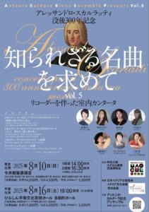 ♪アントニオ・カルダーラ記念アンサンブル 《知られざる名曲 Vol.5 アレッサンドロ・スカルラッティ生誕300年記念コンサート リコーダーを伴った室内カンタータ》
