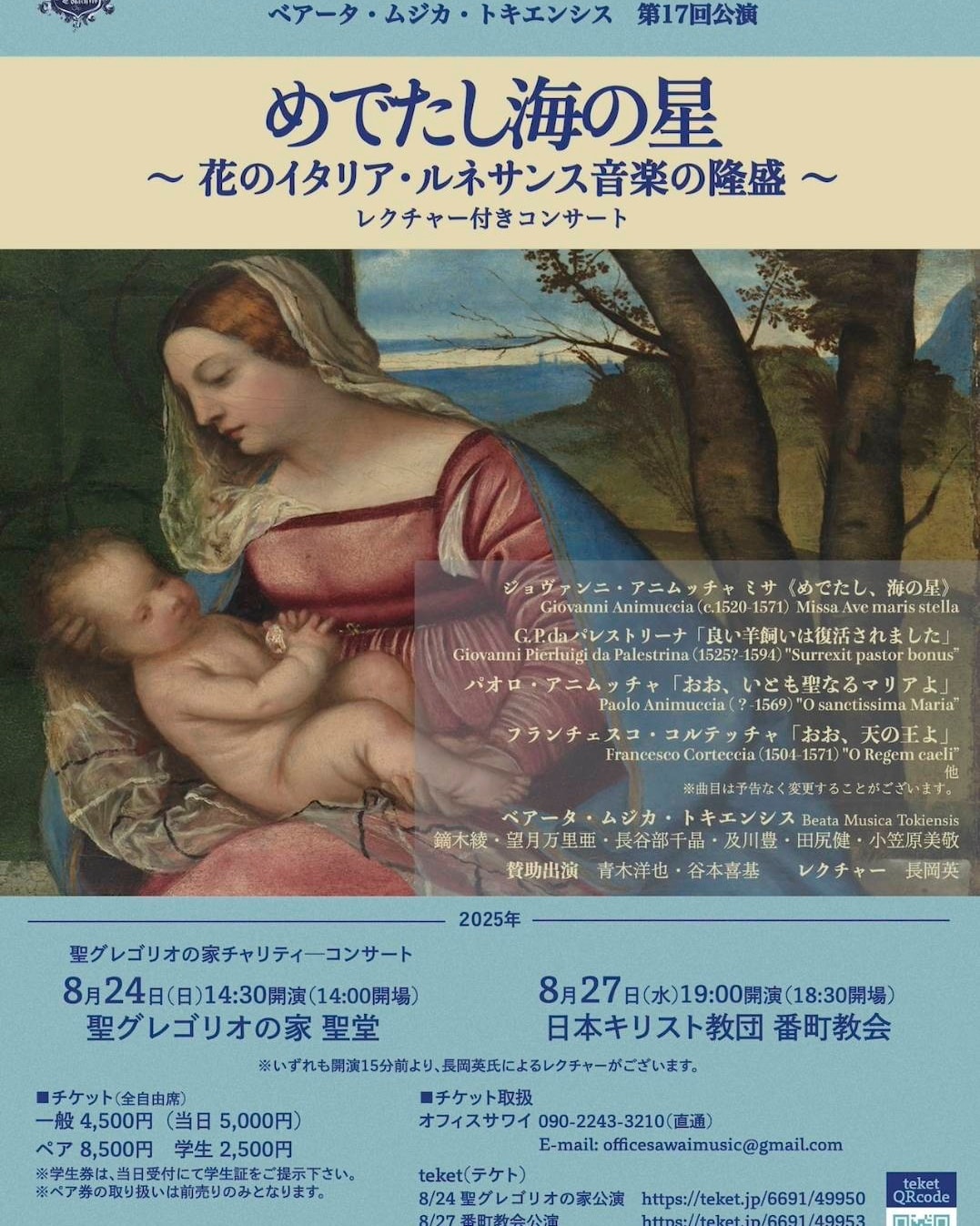 ベアータ・ムジカ・トキエンシス第17回公演 めでたし海の星~花のイタリア・ルネサンス音楽の隆盛~
