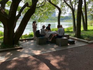 そんな幸せ状態の今年度、「ガチの共同研究」メンバーは、大学院生2人、ポスドク2人、それに私、という5人。研究内容は兵庫のお祭り、明治日本、中世からのヨーロッパ、18世紀フランス、19世紀ドイツ、と、全くバラバラで5つ以上ある。その内の4人で、この9月、国際音楽学会東アジア支部大会に参加し、それぞれ研究発表をした。開催場所は中国の広西チワン族自治区の南寧市にある広西芸術学院。アジアを中心とした音楽学研究者が約120人集まった。私たちは23歳から53歳までの女子4人。いきあたりばったりの珍道中。