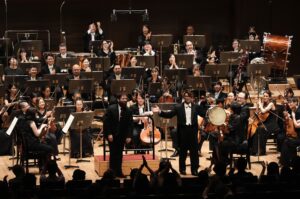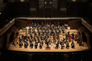 後半のラヴェルは、オーケストラが持つ色彩の幅を最大限に示す舞台であった。〈第二組曲〉では木管と弦楽合奏が溶け合い、楽想が水面に弧を描くように浮かび、オーケストラ全体の空間が透明なテクスチャーを浮き彫りにした。打楽器は場面転換のシグナルとして効率的に機能し、音響の層を立体化させていた。