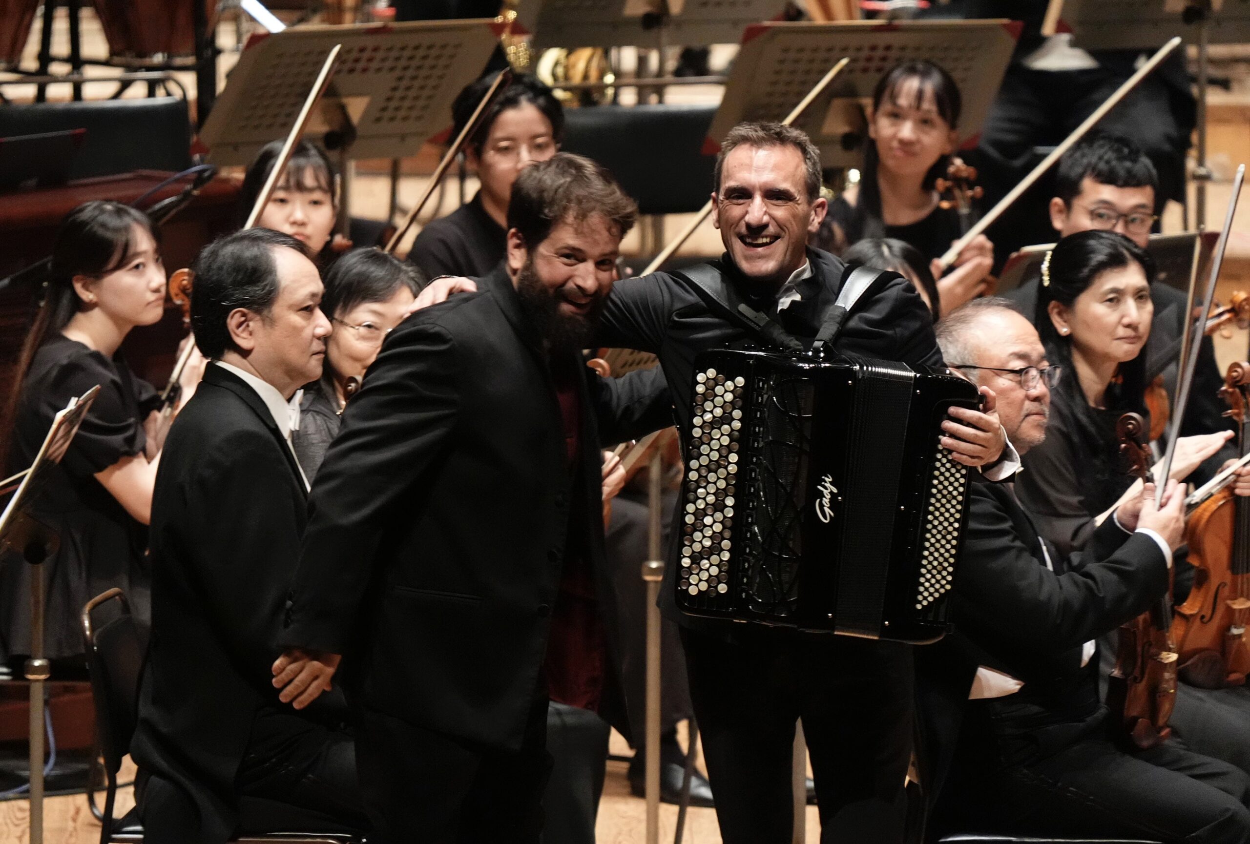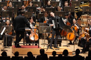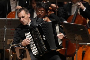 中盤の二曲は、アコーディオンという楽器を通じて聴衆のオーケストラに対する聴取の習慣を軽やかに揺さぶった。フェリシアン・ブリュは熟練の技により機微に富む表現を披露し、蛇腹の微妙な圧力と簧の微振動を精密に制御して、オーケストラとの対話を成立させた。