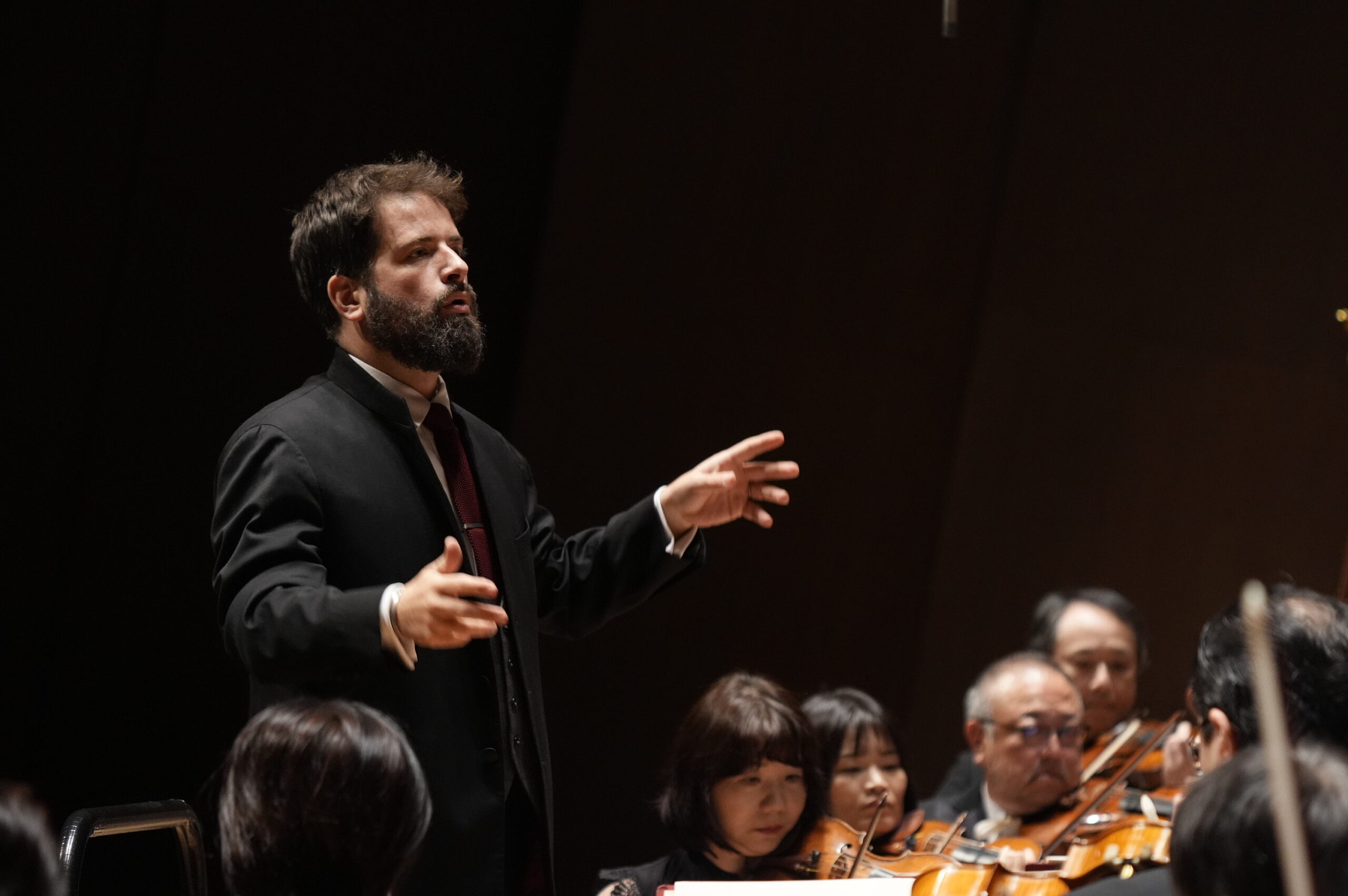 後半のラヴェルは、オーケストラが持つ色彩の幅を最大限に示す舞台であった。〈第二組曲〉では木管と弦楽合奏が溶け合い、楽想が水面に弧を描くように浮かび、オーケストラ全体の空間が透明なテクスチャーを浮き彫りにした。打楽器は場面転換のシグナルとして効率的に機能し、音響の層を立体化させていた。