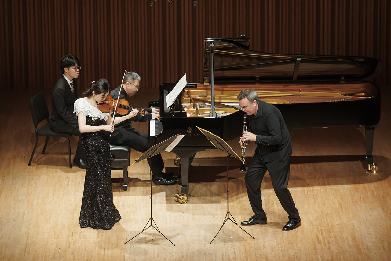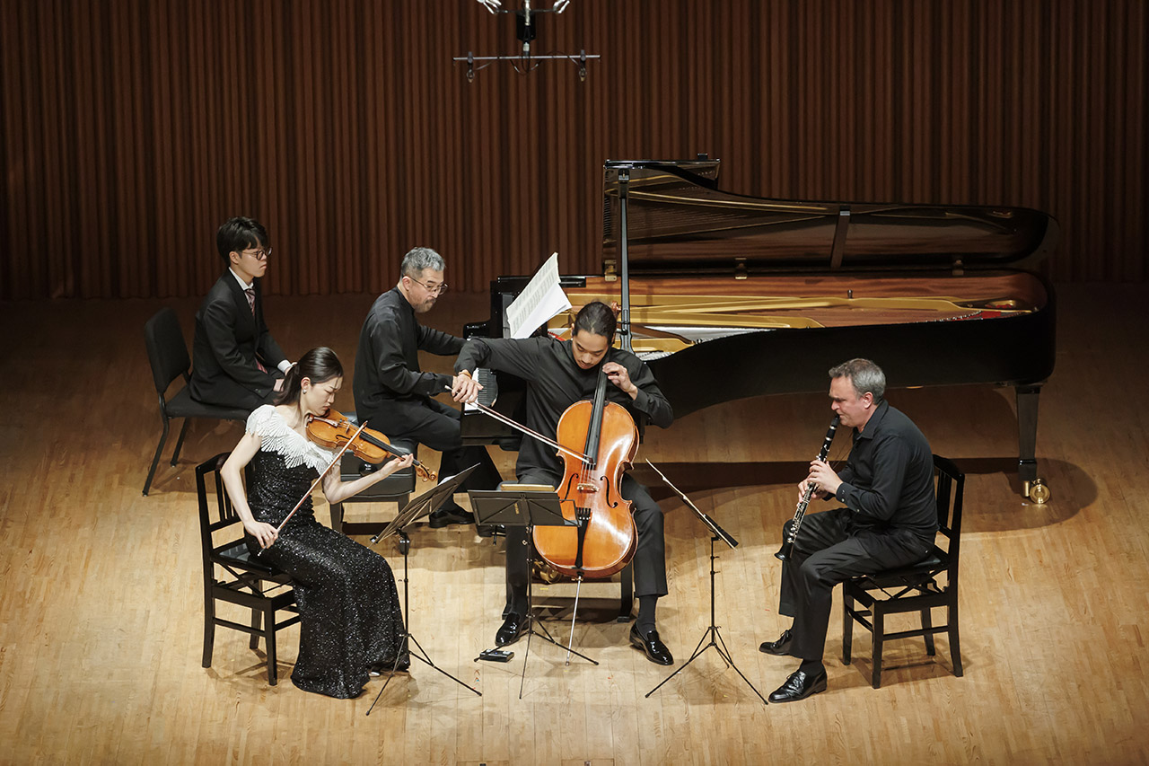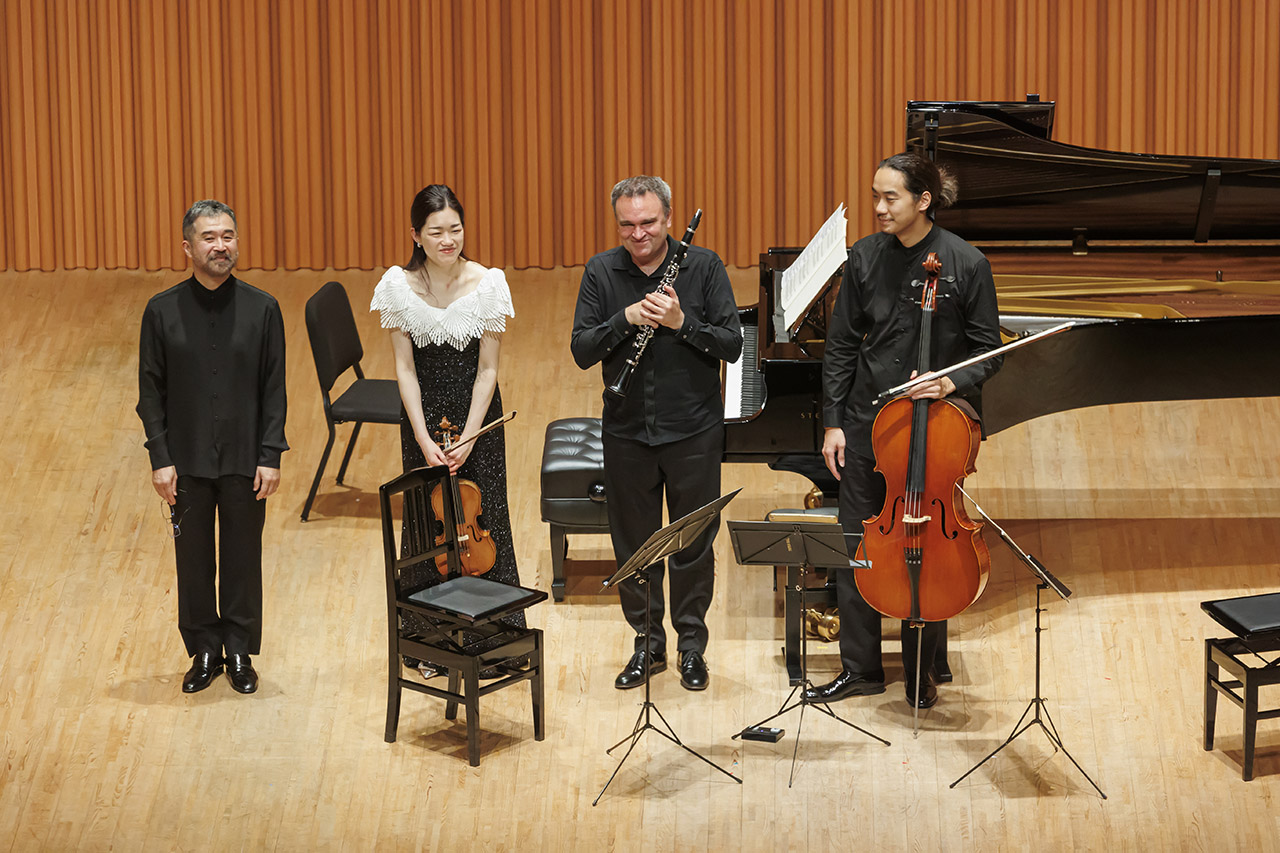 冒頭のヴィトマン《ミューズの涙》は、精緻に編まれたテクスチュアの上で、音の動きが「自分」と「他者」の境界を揺さぶるように響いていた。クラリネット、ヴァイオリン、ピアノはそれぞれが独自の声部を持ちながら、決して孤立せず、常に相互の気配を吸収し、また押し返すことで存在を確かにしていた。