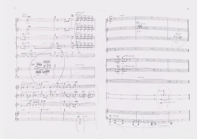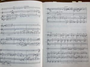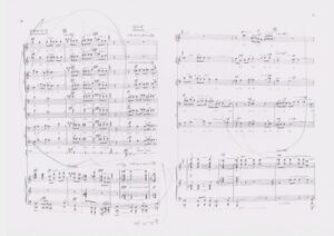 音にゆく。全体はⅢ部に分かれるが、謡いは詩の流れに必ずしも沿ったものではない。[Ⅲ]には[Ⅰ] [Ⅱ]が流れ込み、時空は錯綜する。スコアにある楽節番号に沿ってゆくと、以下。