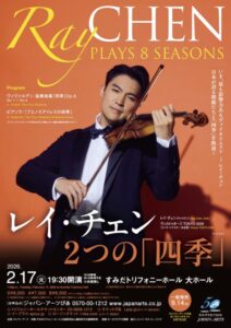 現代に即応したカリスマ性で人気を集めるレイ・チェンと、彼との共演を目的に参集した日本のヴィルトゥオージ TOKYO 2026メンバーによる「四季」。名曲を楽しむに最高のカードだ。ピアソラ「ブエノスアイレスの四季」とヴィヴァルディ「四季」を交互に演奏という仕掛けがどんな世界を見せてくれるか。