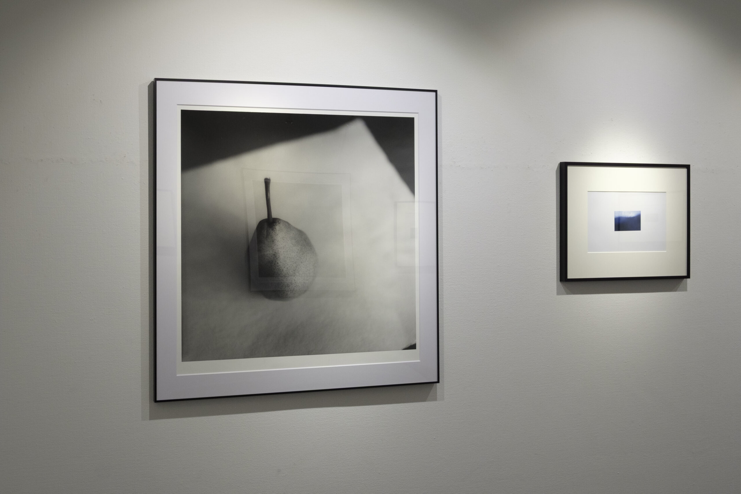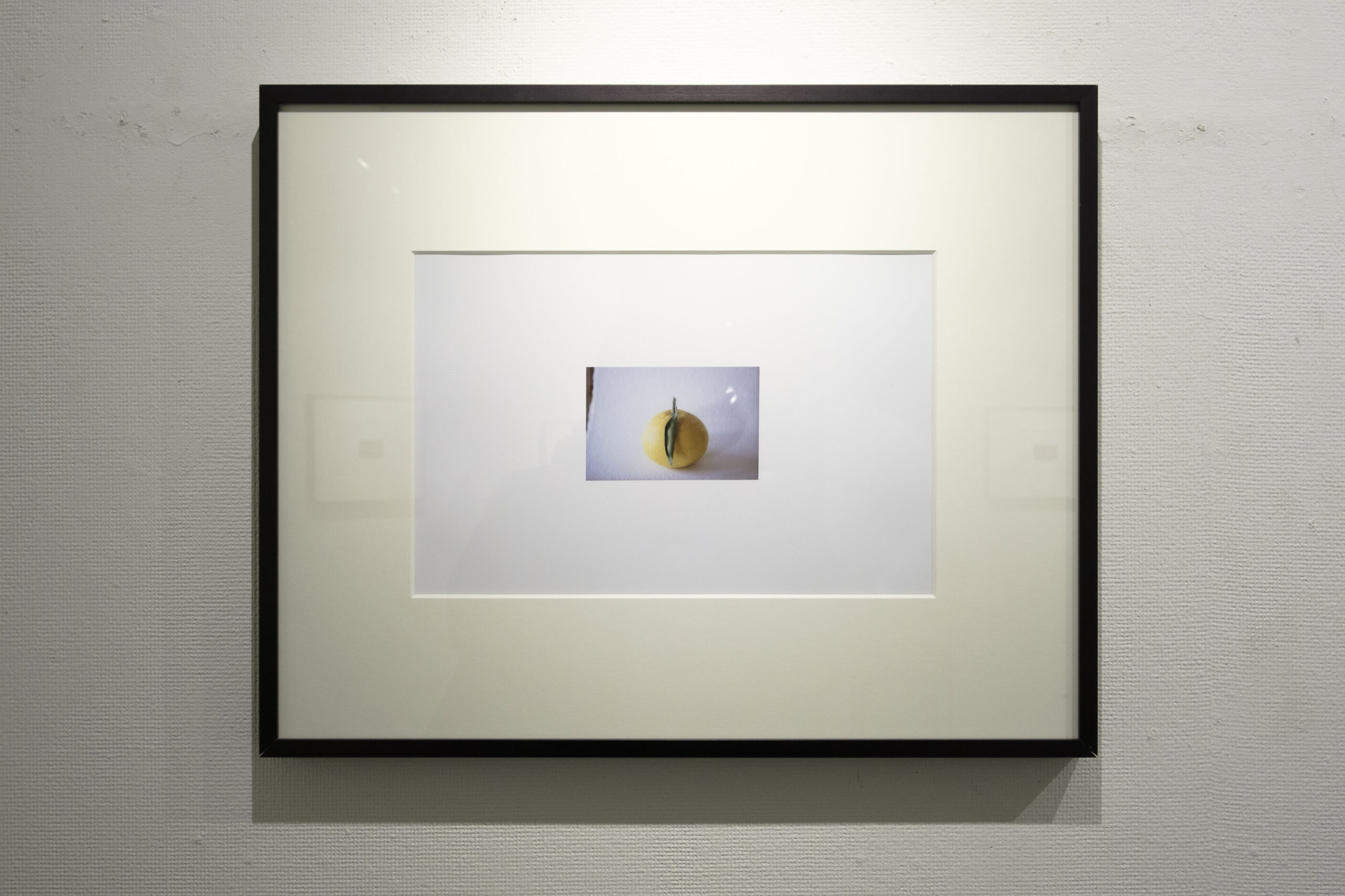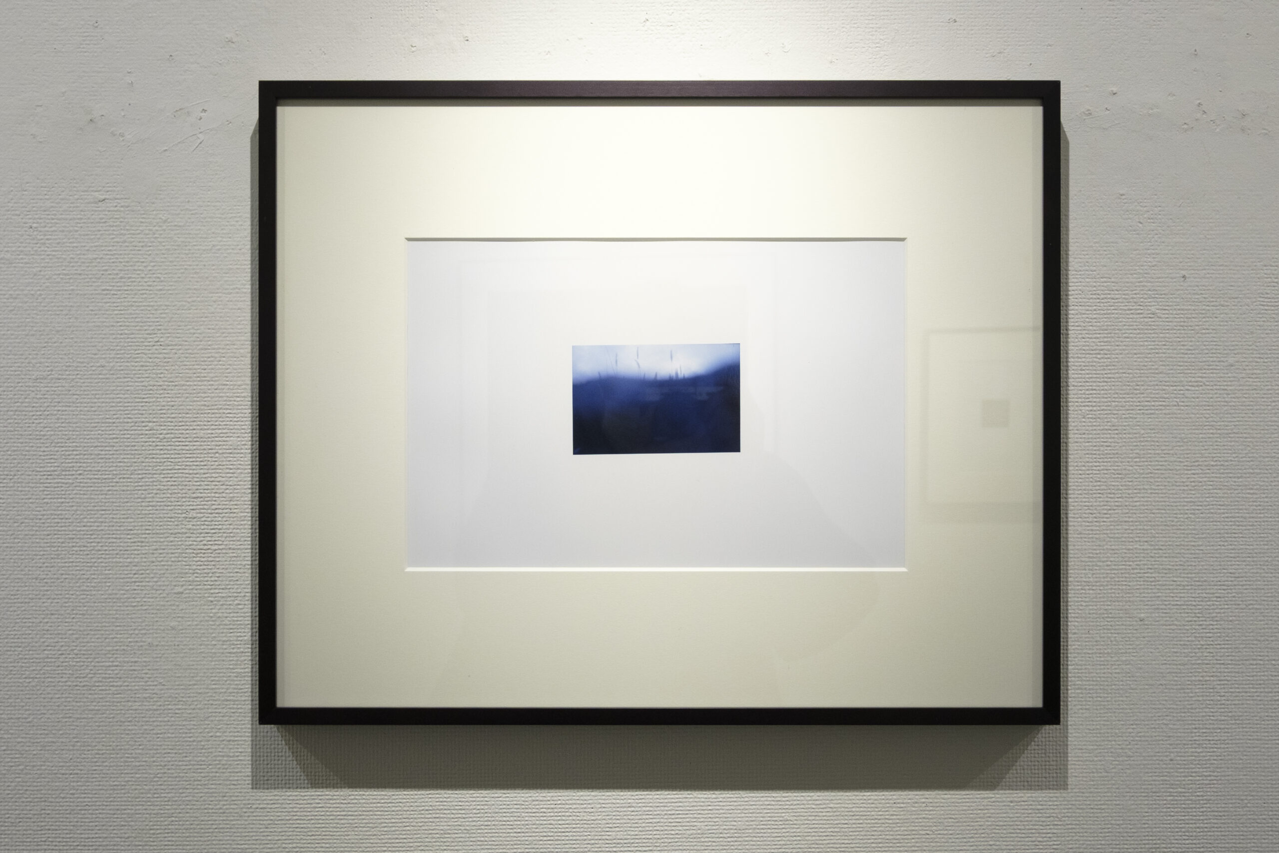 小さな写真。大きな紙に余白を多く取り額装されている。余白は画面に含まれている。余白は画面の外側に属して囲んでいる。