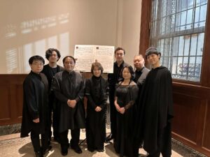 『イートン・クワイヤブック』の3曲は、クワイヤブック(聖歌隊本)、すなわち全員で一冊の大きな楽譜を取り囲んで、それを見ながら歌う形を取っており、いずれも模倣によらないポリフォニーが展開されている。声部ごとにネウマ譜で書かれているものをそれぞれが見て歌っているゆえに、1声部ずつが独自の揺らぎを持っていて、それがかわるがわる、まるで波のように押し寄せてくる。さや堂ホールの残響の多い響きもあり、音の波に心が揺さぶられた。