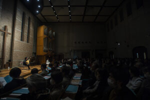 教会という場でのこの光景、そして古と今を結ぶ音景に、人間と音楽の変わらぬ営為と姿が浮かび上がってくるようだった。