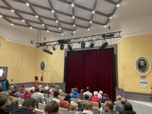 上演が終わると、人形遣いの人たちが全員出てきて挨拶するのがお決まりである。ほとんどが50~60代くらいで、この道に熟練した人たちである。以前ミュンヘンでは公的に人形遣いを養成する学科をつくる案があったそうだが、コロナで白紙になってしまったそうだ。そんな経緯もあり、ここでも後継者育成には苦労しているようだ。