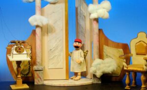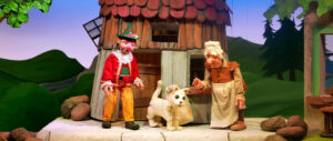 この演目ではただ人形によって物語が繰り広げられるだけでなかった。開演と同時に客席のドアからいきなりバイエルンの民族衣装を着た女性が野菜スタンドを押して出てきた。彼女はバイエルン方言で世間話をしはじめ、雰囲気はまるでミュンヘンの市場にいるかのように。観客に話しかけたり野菜を手渡したりしながら、幕があがるまでに会場をあたためてくれた。他の演目でも、公演中に人形遣いがそのまま舞台に出てきて人形と話をしたり、場面転換の際に次の場面の準備をしている舞台裏の様子をあえて見せたりして、演目ごとに工夫された演出を楽しむことができる。