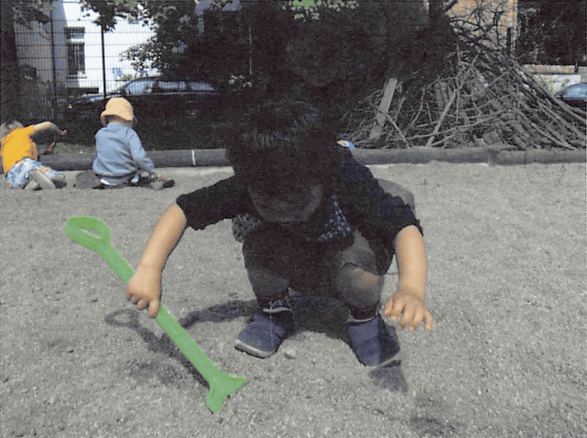 広い砂場。日本の保育園の園庭全部くらいの大きさだ。初めての日、ザイは歓声をあげた。全身砂まみれ。日本の保育園で「ポケットから砂が出てくる……」なんて言って文句タラタラだったのがバカバカしかった。ドイツでザイは、まるで砂が歩いているようなものだった。園全体も広い。ある時ブランコから落ちたと言って、背中も顔も血だらけの大怪我をしていたのに、先生は誰も見ていなかったという。日本の大規模な小学校くらい広いのだから仕方ない。
